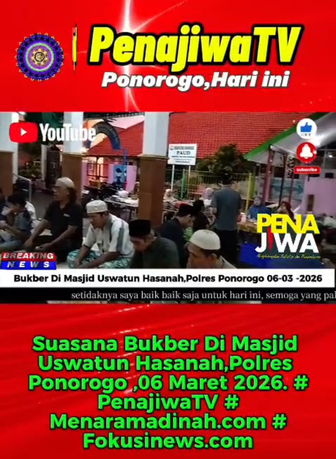 PONOROGO, Jum’at, 06 Maret 2026 #Fokusinews.com.JUM’AT BERKAH, Alhamdulillah hari ini begitu indah. 16 hari sudah perjalanan safari ramadhan. Setelah Silaturahmi, sinergi & berbagi di beberapa tempat, hari ini kita di Masjid Uswatun Hasanah, Komplek Polres Ponorogo. Kalau kemarin kita sudah di Masjid Viral, Masjid entrepreneur ” BAITUL MUKHLISIN ” Ponorogo, untuk selanjutnya selama bulan  puasa, […]