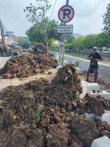 Proyek Turap sepanjang kali di Jalan Raya Kemakmuran belakang Kantor Walikota Bekasi Semrawut, sebagian Jalan tertutup Tanah urugan