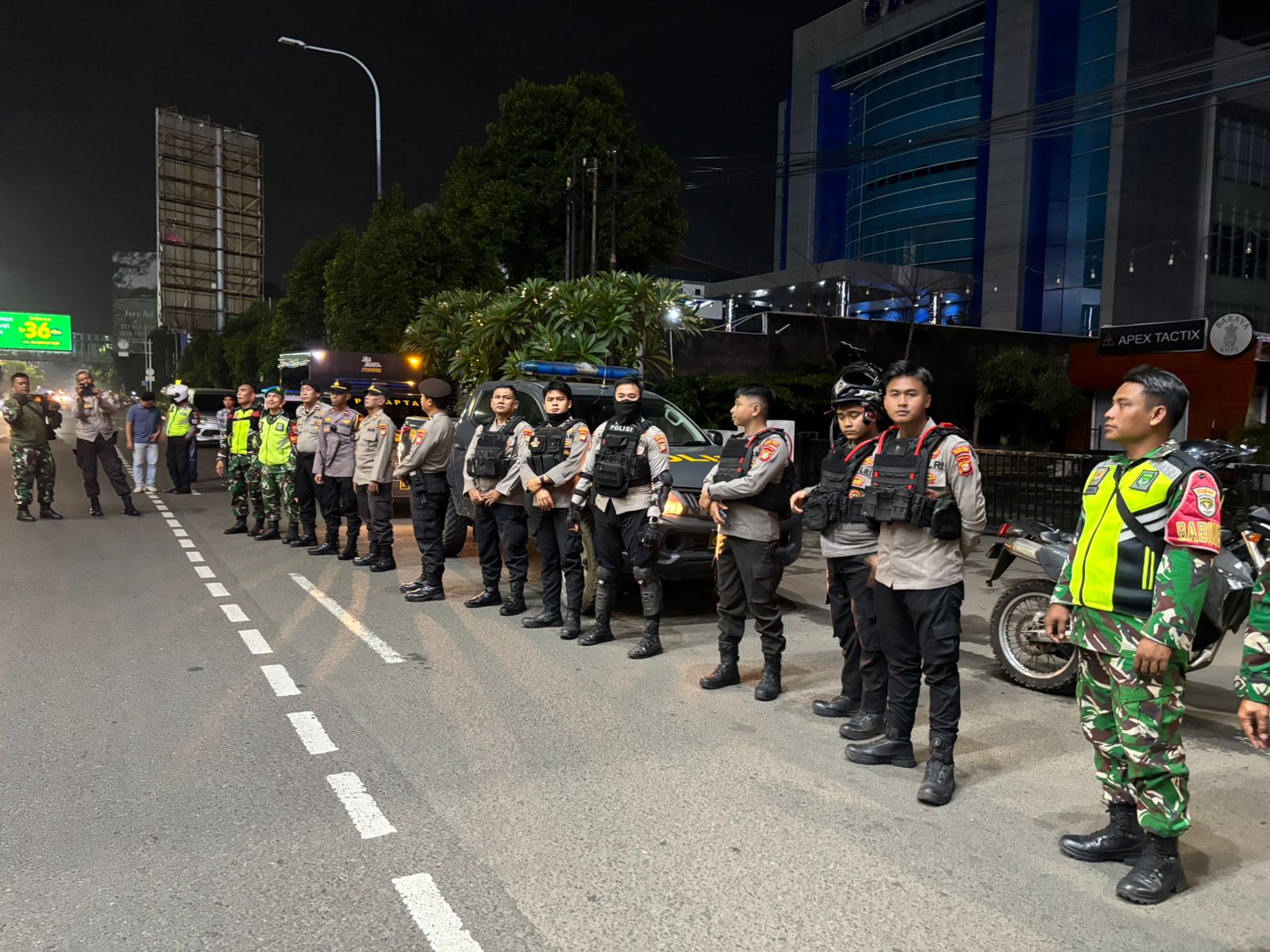 “Petugas melaksanakan patroli antisipasi gangguan Kamtibmas di Jalan Ahmad Yani dan Kayuringin. Kehadiran personel di lapangan bertujuan memastikan situasi tetap aman dan terkendali,” Kata Kasat Samapta Polres Metro Bekasi Kota.
