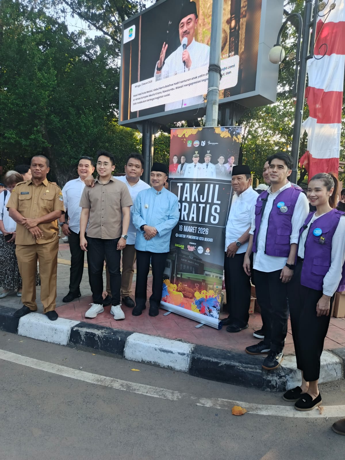 Turut hadir dalam pembagian takjil Bapak Wakil Walikota Dr.Abdul Harris Bobihoe Serta Ketua FKUB Kota Bekasi Bapak Letkol TNI (Purn) H.Abdul Manan yang langsung turun kejalan untuk membagikan makanan dalam kemasan kepada pengendara motor serta mobil yang melintas dijalan perjuangan kota Bekasi