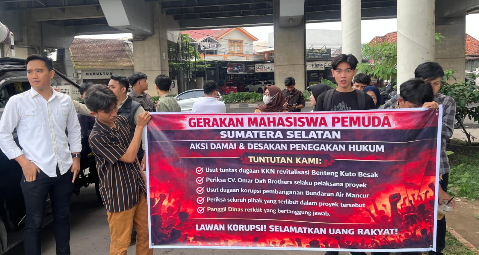 Koordinator Aksi Aliansi Mahasiswa Pemuda Palembang, Eko Wahyudi, menyampaikan bahwa proyek revitalisasi Benteng Kuto Besak diduga tidak berjalan sesuai masa kontrak pekerjaan sehingga menimbulkan indikasi lemahnya pengawasan serta potensi kerugian keuangan negara.