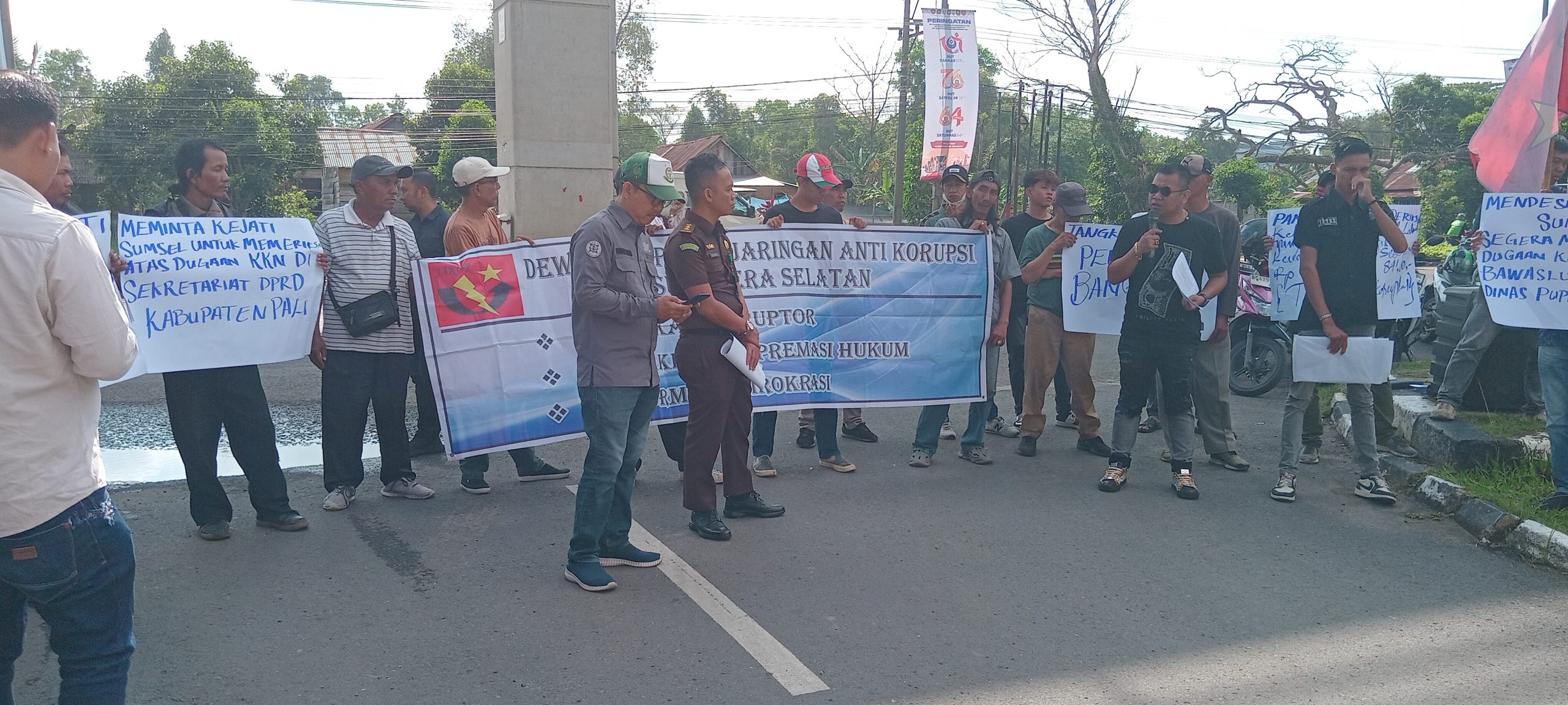 Fokusinews.com | Palembang, – Massa Dewan Pimpinan Jaringan Anti Korupsi Sumatera Selatan (JAKOR SUMSEL) sambangi Kejaksaan Tinggi Provinsi Sumatera Selatan (Kejati Sumsel ) untuk melakukan aksi unjuk rasa damai terkait adanya dugaan Korupsi, Kolusi dan Nepotisme ( KKN ) yang mengakibatkan Kerugian Negara di Bank Sumsel Babel Cabang Martapura, Provinsi Sumater Selatan.