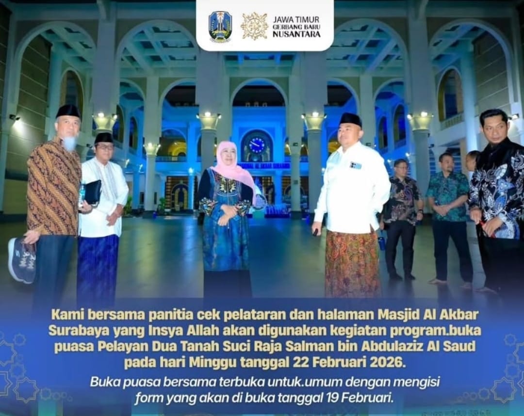 SURABAYA, 20 / 02 / 2026 #Fokusinews.com Acara Berbuka bersama Gubernur Jatim yang rencananya di adakan tanggal 22 Pebruari 2026,ada sedikit pergeseran waktu pelaksanaanya, Yaitu Sabtu 21 Pebruari 2026 ( atas permintaan dari Syeikh)