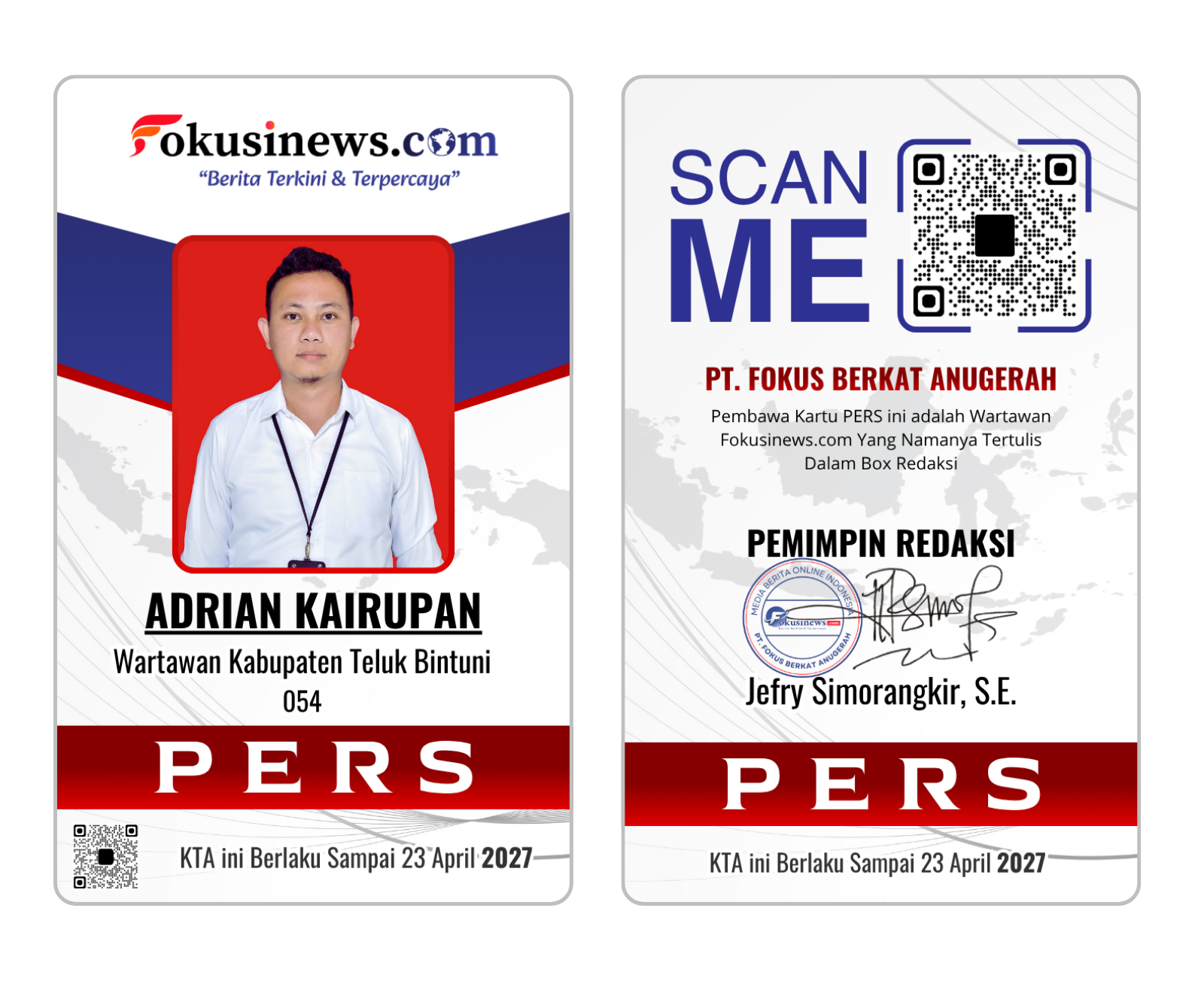 Wartawan Kabupaten Teluk Bintuni : Adrian Kairupan