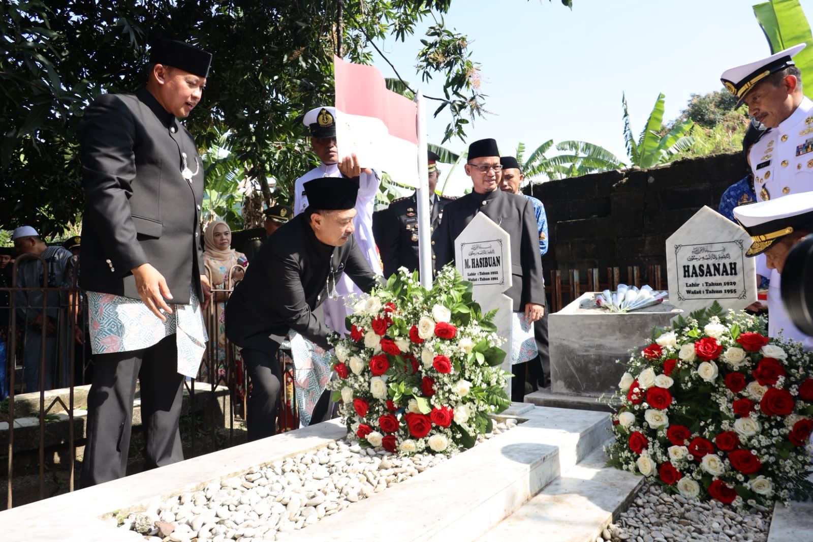 Sebagai bentuk penghormatan terhadap jasa para pejuang Kota Bekasi, Wali Kota Bekasi Tri Adhianto bersama Wakil Wali Kota Bekasi Abdul Harris Bobihoe melakukan prosesi penyematan helm pahlawan di makam tokoh perjuangan Kota Bekasi, M. Hasibuan. Selasa (10/03).