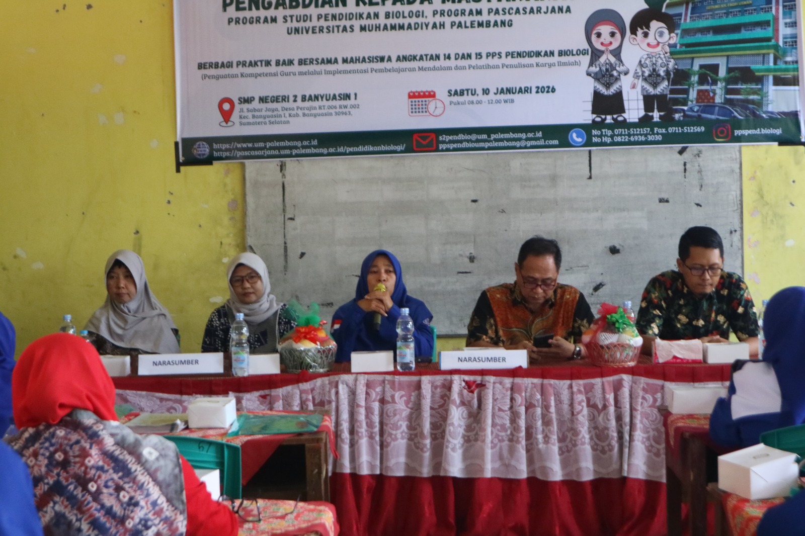 Fokusinews.com | Palembang,- Program Pascasarjana Program Studi Pendidikan Biologi UM Palembang mengadakan kegiatan pengabdian kepada masyarakat di SMP Negeri 2 Banyuasin I pada tanggal 10 Januari 2026.